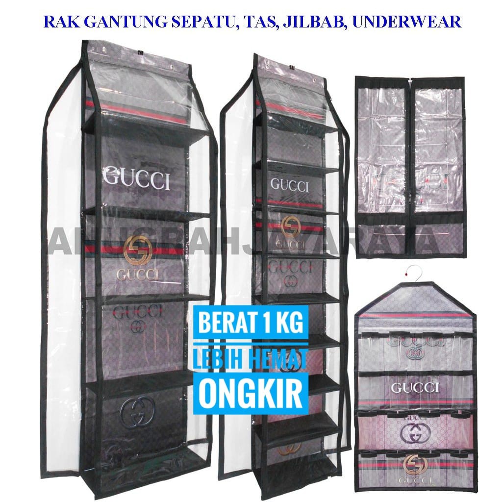 Set 4 in 1 KARAKTER terlihat serasi dan indah dipandangHSO = Rak gantung tas untuk melindungi tas dari kotoran dan debu.HBO = Rak gantung sepatu dan sandal untuk melindungi sepatu dan sandal dari kotoran dan debu.HJO = Hanger Hijab/Jilbab/Kerudung untuk melindungi Hijab/Jilbab/Kerudung dari kotoran dan debu. Rak Underwear Ukuran +/- 42 x 80 cm 16 sekat MIKA transparan Spesifikasi: RAK TAS ORAGNIZER (HBO) - Panjang dari kiri ke kanan 30 cm - Lebar rak 17 cm - Tinggi dari atas ke bawah 130 cm RAK GANTUNG SEPATU SANDAL - Panjang dari kiri ke kanan 30 cm - Lebar rak 13 cm - Tinggi dari atas ke bawah 130 cm HANGER HIJAB/JILBAB/KERUDUNG - Panjang cover 70 cm, lebar 45 cm Rak Underwear Ukuran +/- 42 x 80 cm 16 sekat MIKA transparan BAHAN: - Triplek tebal tidak mudah patah Dapat dilipat dan mudah dibawah kemana-mana - Motif dan warna sesuai gambar - Pakai Resleting dan plastik tebal - Terbuat dari bahan banner yang tahan air sehingga awet dan tahan lama Desain keren dan menarik Fungsi menyimpan celana dalam, kaos kaki dan aksesoris Paket SUDAH TERMASUK HANGER besi Membuat rapi almari dan mudah mengambilnyaMotif sesuai persediaan.Berikan alternatif warna jika warna lain kosongBisa di bawa travellingUkuran +/- 42 x 80 cm Tiap sekat bisa untuk 3 - 4 celana dalam Bisa digantung ke hanger Bagian atas terdapat lobang untuk hangerNOTE: JIKA BARANG SUDAH DATANG, SEGERA KONFIRMASI DAN JANGAN LUPA BERI BINTANG 5 YA... TERIMA KASIH :)#rakgantungmurah #grosirrakgantung #raksepatu #raktas #rakjilbab #rakjilbabgantung #rakmurah #rakorganizerkarakter #rakgantungserbaguna #3in1organizer #3in1organizerbag #anekarakgantung #rakfuulresleting #rakmurahmeriah #rakmultifungsiorganizer #rakgantungkarakter #readystock #raksepatu