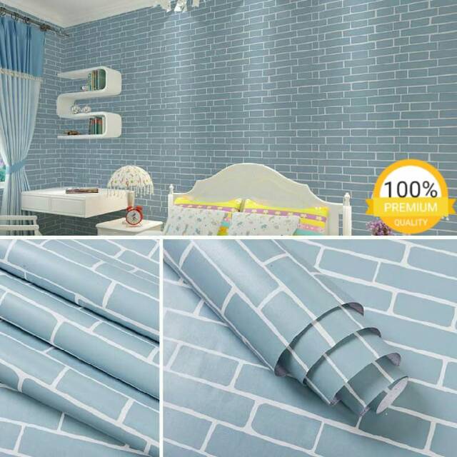 Name: Grosir Murah_wallpaper Sticker Dinding Ruang Tamu, Kamar, Kantor Batu Bata Biru Minimalis 10mx45cm