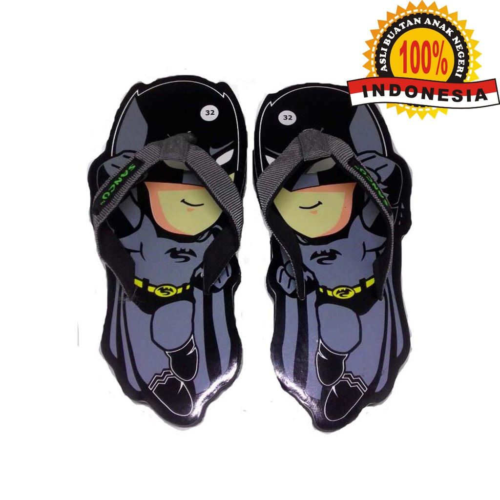 Sancu adalah sandal karakter kreatif , expressive dan lucu 100% ASLI BUATAN ANAK NEGERI serta sudah terdaftar di kementrian Perdagangan Republik IndonesiaModel : BATMANBahan material : Karet spon dengan lapisan Rubber sole simplex (slip on)Size : 24 , 28 , 30 , 32 , 34 , 36, 38, 40 dan 42PATOKAN UKURAN PANJANG SANDAL SANCU/BONCU DAN DETAIL PERKIRAAN USIA PEMAKAI :Size 24 = 18 Cm. Untuk usia 2 - 3 TahunSize 28 = 19 Cm. Untuk usia 3 - 4 TahunSize 30 = 20 Cm. Untuk usia 4 - 5 TahunSize 32 = 21 Cm. Untuk usia 5 - 6 TahunSize 34 = 22,5 Cm. Untuk usia 6 - 7 - 8 TahunSize 36 = 23,5 Cm.Untuk usia RemajaSize 38 = 24,5 Cm. Untuk usia RemajaSize 40 = 26,5 Cm. Untuk DewasaSize 42 = 28 Cm. Untuk DewasaKetentuan :1. Sebelum order tanyakan terlebih dahulu stok yang akan diorder2. Sesuaikan order dengan Variasi size yang anda inginkan3. Untuk 1Kg = 5 Pasang (berlaku untuk semua ukuran dan bisa dicampur dengan karakter yang lain)4. Barang akan dikirim setelah ada notifikasi dari SHOPEE5. Konfirmasi pembayaran dari SHOPEE sebelum jam 15.00 dikirim di hari yang sama6. Barang yang sudah di terima mohon segera konfirmasi ke SHOPEE dan mohon memberi rating serta Ulasa