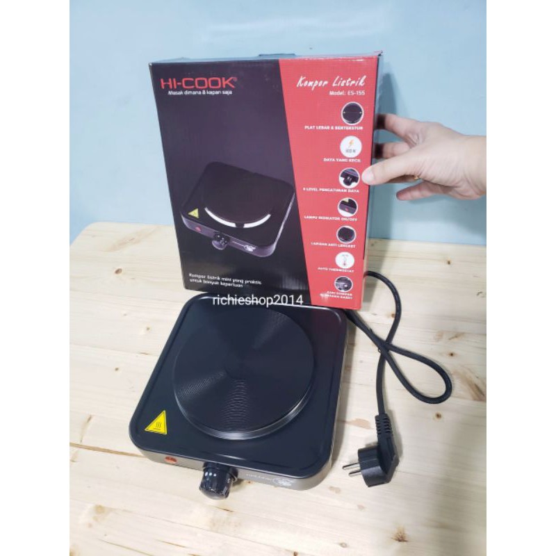 Hi-Cook Kompor Listrik ES-155, kompor listrik yang ringan dan Highlights:-HI-COOK Kompor Listrik-Memiliki 5 level daya sesuai kebutuhanFitur:-Plat pemanas lebar dan bertekstur-Design floral yang unique, terlihat menarik-Daya yang kecil-Kaki kompor berbahan karet sehingga lebih stabil dan aman-Lapisan anti lengket-Dilengkapi lampu indikator On/OffSpesifikasi teknis:Model : ES-155 / Electric StoveDaya : 600 Watt Listrik : 220-240 V, 50-60 HzDimensi (mm) : P210 x L210 x T65Berat : 1