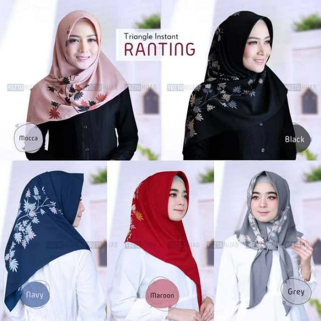 Triangle/Segitiga Instant RantingHijab segitiga instan motif ranting, praktis langsung slup tanpa peniti atau jarum pentul namun tetap cantik untuk segala suasana. Material bubbleprint yang tampak elegan dan ekslusif, ringan dan tidak menerawang. Ket : gambar merupakan REAL PICTURE VAZYA HIJAB TrademarkBahan : high quality bubbleprintKeterangan dan stok warna ready :- Mocca: ready- Black: ready- Navy : ready- Maroon : ready- Grey : re
