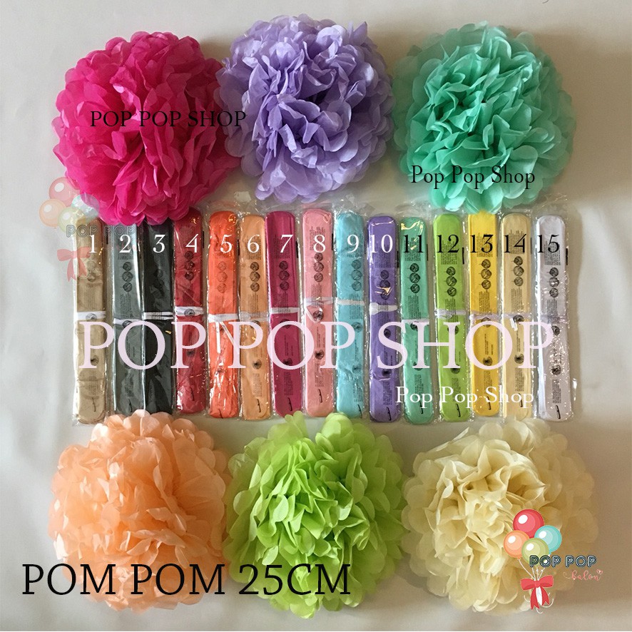 Pom Pom Kertas Bunga Dekorasi / Tissue Flower Ball DIYUkuran: 25cmBahan: kertas krep UPDATE MAR 21READY WARNA: GOLD, SILVER, PUTIH, HITAM, PINK MUDA, OREN, MERAH, BIRU MUDATersedia warna:1.GOLD2.SILVER3.HITAM4.MERAH5.OREN6.PEACH7.PINK MAGENTA8.PINK MUDA9.BIRU MUDA10.UNGU11.HIJAU TOSCA12.HIJAU MUDA13.KUNING14.CREAM 15.PUTIH16. BIRU NAVYHarap mencantumkan warna/ kode warna yang diingkan. Kalau tidak, akan dikirimkan RANDOM.READY STOCKHappy Shopping #kertaspompom #pompom #dek
