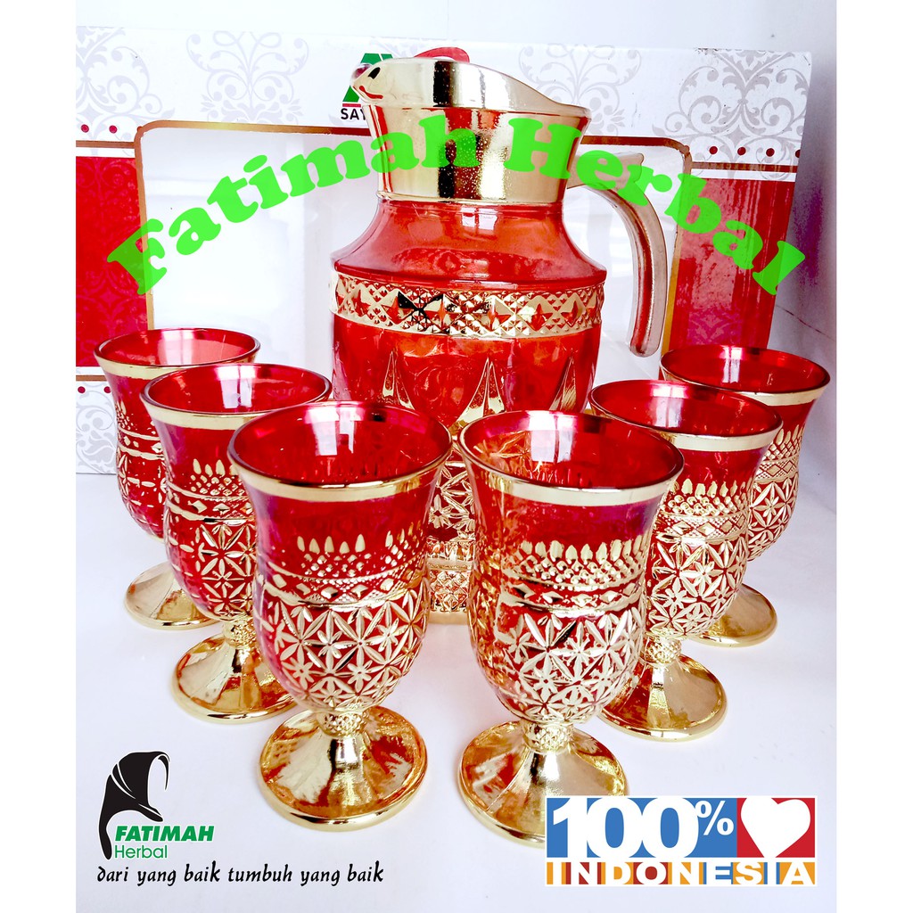 Teko Air Zam Zam kaca glassIsi : 1 Buah Teko + 6 GelasTersedia warna : Merah, dan Hijau Bagi Anda yang membawa air zam zam dari tanah suci dan ingin membagikannya kepada tamu-tamu Anda di rumah sekarang tidak perlu susah payah mencari pitcher atau teko untuk air zam zam, Kami menyediakan teko air zam zam yang mempunyai bentuk unik dan satu paket dengan gel