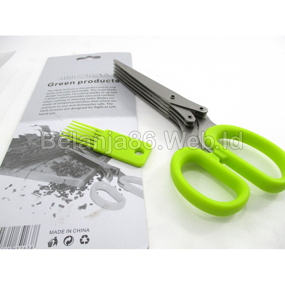 Alat Gunting yang terdiri atas 5 Mata Gunting, cocok di gunakan untuk menggunting bahan-bahan obat tanaman herbal ataupun bahan makanan lain yang memerlukan pemotongan ukuran kecil secara cepat.Mata Gunting Terbuat dari Stainless Steel (Kondisi Tajam).Pegangan/Gagang Gunting Terbuat dari Plastik panjang +/-19cm ( mata gunting +/-8.5cm), celah antara mata gunting +/- 0.5cm.Berat Nett : +/- 163 gr. Warna : hijau.Dimensi Packing = 25 X 12 X 3 Cm.Berat Volume Packing = 225 GrSumber & Konten adalah milik dan hak cipta Belanja86
