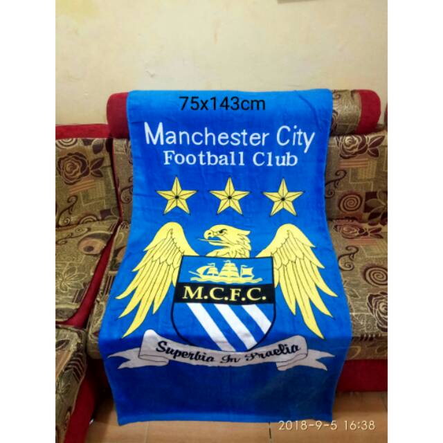 Ready Handuk Club BolaClub Manchester CityUkuran besar 75x143Bahan katun#handukbola #handukmandi#handukmanchestercity#handukmanch