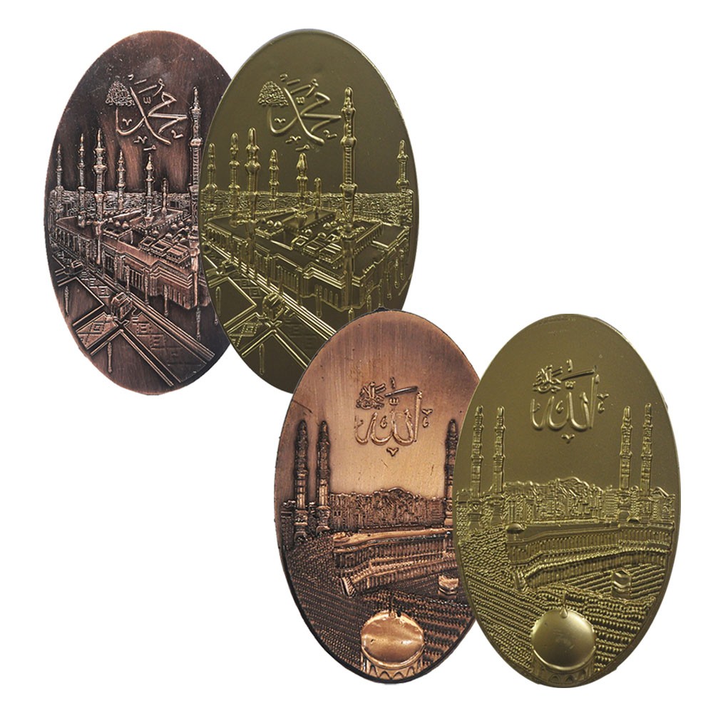 Souvenir Asesoris Tempel Untuk Craft Mahar / ScrapbookModel Plakat OvelUkuran : 6x11 cmGambar : Masjidil haram dan Masjid NabawiKode : BS-510Warna : bronze (perunggu) dan