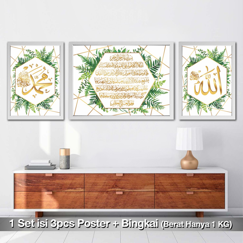 Name: Hiasan Dinding Pajangan Set Poster Kaligrafi Allah Muhammad Ayat Kursi Kufi 16 - Tropical