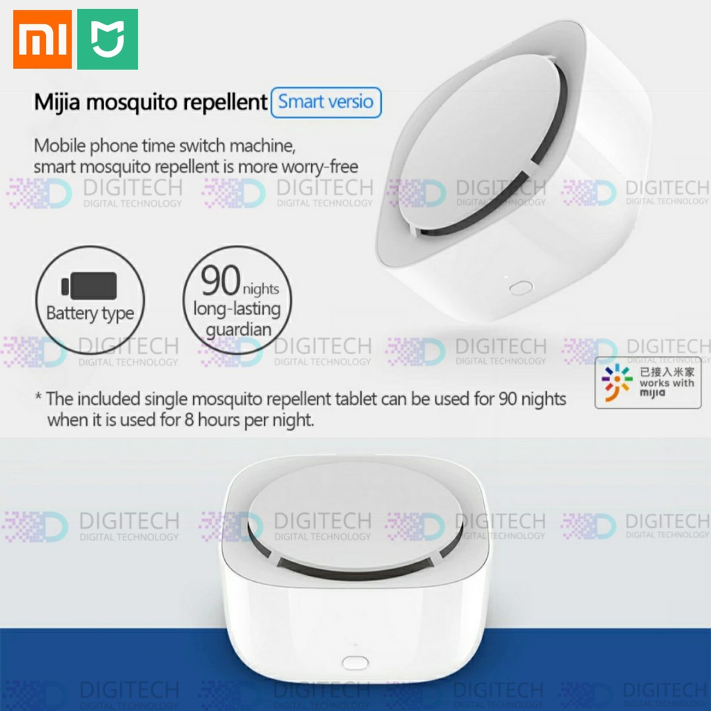 Mijia Mosquito repellentSudah Include,- Battre 2x- Reffil 1xEffective Area 28mWarna: PutihBrand MijiaModel Mijia Newest Mosquito KillerColor Warm WhiteRated Voltage 3.0VRated Power 0.03WSize 98.3mm x 98.3mm x 58.4mm / 3.87" x 3.87" x 2.3"Weight 133gMaterial PP+ ABS( bottom is made of high quality organic silicone )General FunctionMain Feature Built-in Little Fan Drive Volatilize,No Need HeatingNo Need Plug into. (you can place it in anywhere you like)One Button Timing Setting, Ten Hours Timing SettingEasy & Fast Using for HomeTotal Energy Saving, More than 90 days using in one TimeEffective Area '28m" House or Any Room You Like(if you house is bigger than that, you can buy two or more mijia Mosquito Killer for using)How to use use your palm press and anti-clockwise rotate( simple as you want )Power By 2 x AA Battery ( Included for you )Working Time More than 90 days with effecttive Useisi dalam paket pengiriman :1 x Mosquito Dispeller1 x Mosquito Repellent Mat2 x AA Battery1 x User M