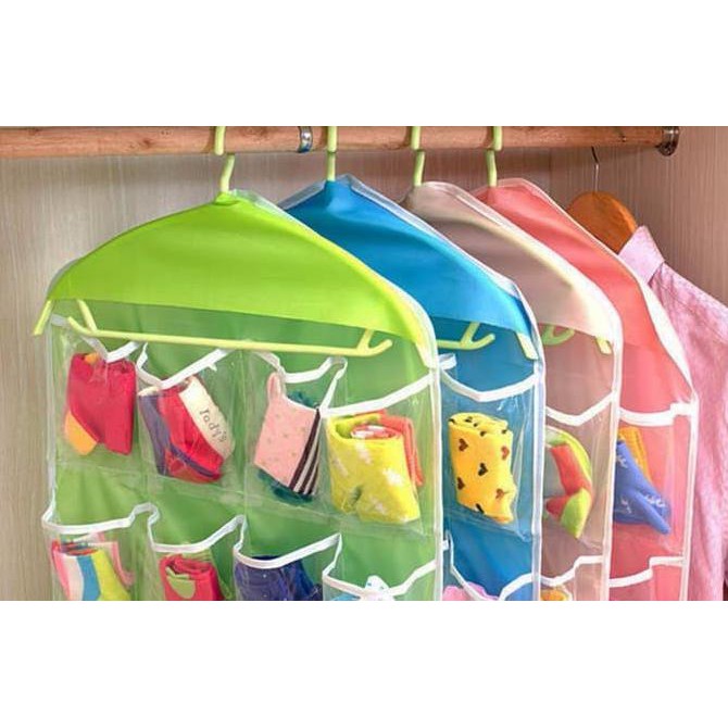 * INFO PENTING *✅ Ready Stock Dan Dikirim Dalam waktu 24jam !✅ Ketika Memesan Mohon tuliskan warna yang di inginkan di kolom keterangan✅ Apabila memesan tanpa menanyakan stock dan warna. Kami kirim warna RANDOM.✅ Silahkan Hubungi Cs kami Jika Ada Pertanyaan✅ Ikuti kami untuk info DISKON dan BARANG BARU !Pilhan Warna :- Hijau- cream- BiruBuWanita suka koleksi aneka model dan warna celana dalam. Namun seringkali koleksi celana dalamnya numpuk atau berserakan di lemari, malu kan jika dilihat tamu.Dengan Korean underwear pouch, celana dalam jadi tersimpan rapi dan mudah diambil saat hendak dipakai.Pouch terdiri dari 16 sekat transparan, tiap sekat dapat di isi 3-4 pcs celana dalam.Pouch dapat digantung ke hanger, mumudahkan untuk digantung di dalam lemari. Bagian atas terdapat lobang untuk hanger.Selain untuk tempat panties, pouch juga dapat digunakan untuk tempat menyimoan aksesoris. Dengan sekat yang cukup banyak, bisa diisi dengan aneka aksesoris seperti kalung, gelang, anting dan pernak pernik lainnya.Material : Polyesternanti air. Sekat bahan plastik transparanSize : +/- 42 x 80 cm*Produk tidak termasuk H